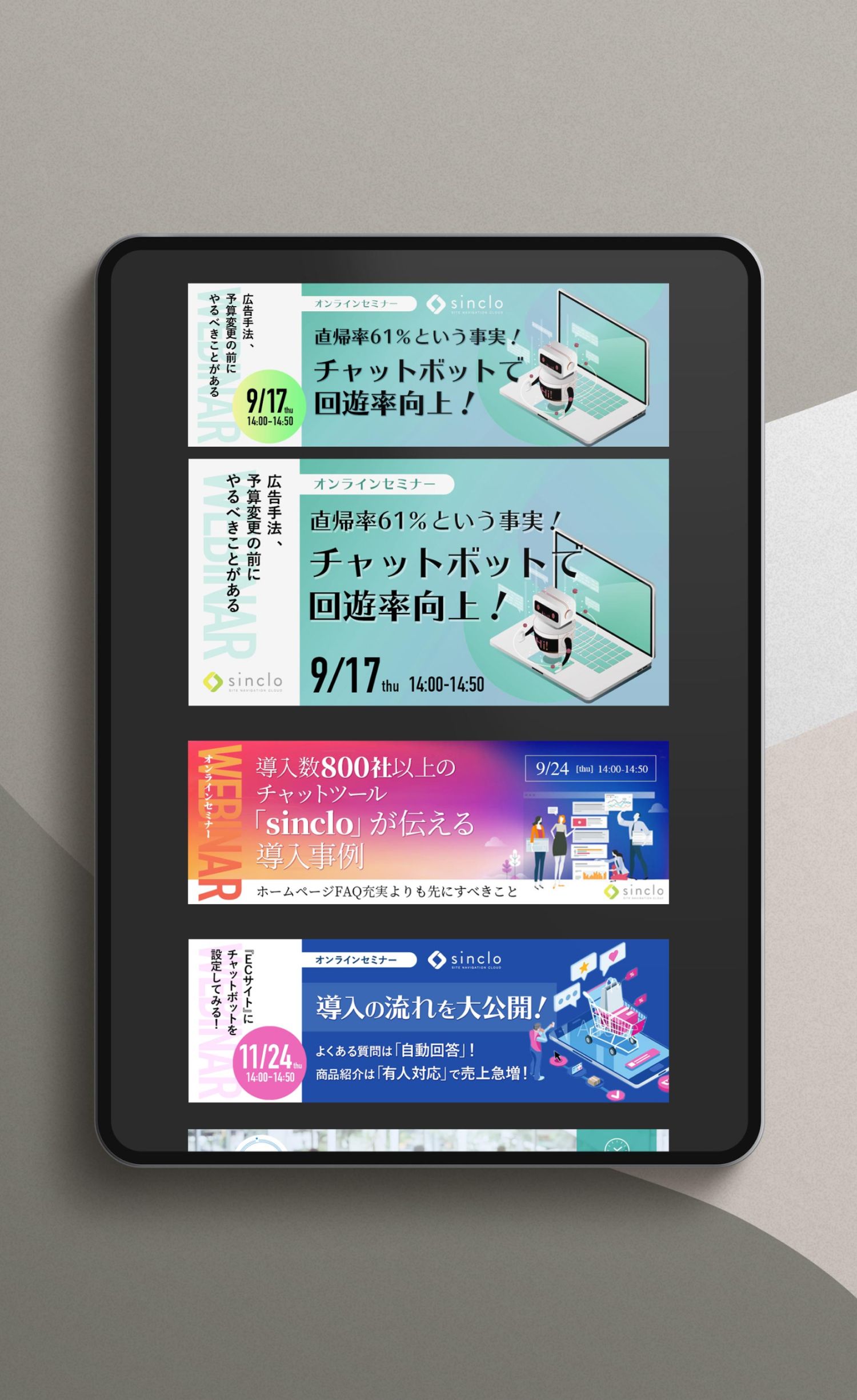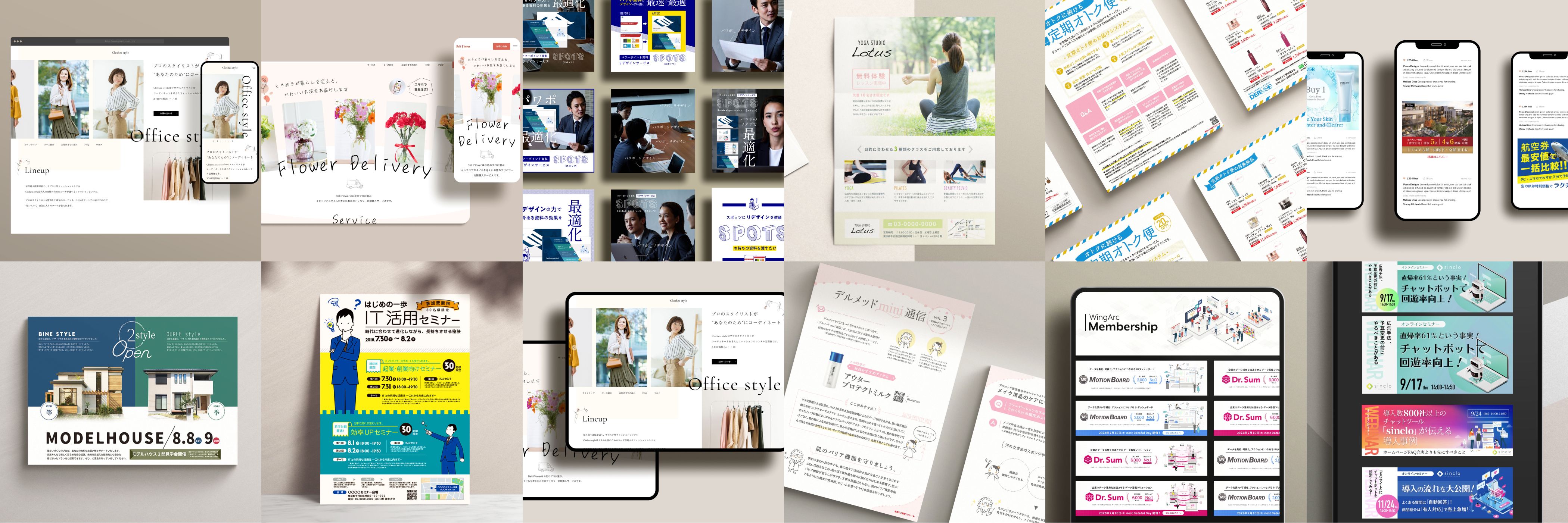 バナー、ランディングページ、webサイト、営業資料…etc。